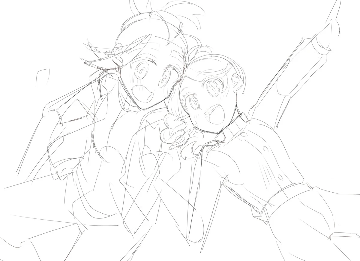 最初のラフ(寝っ転がって天窓を指差すアオイ&なんで照れさせたか忘れてしまったスグリ)